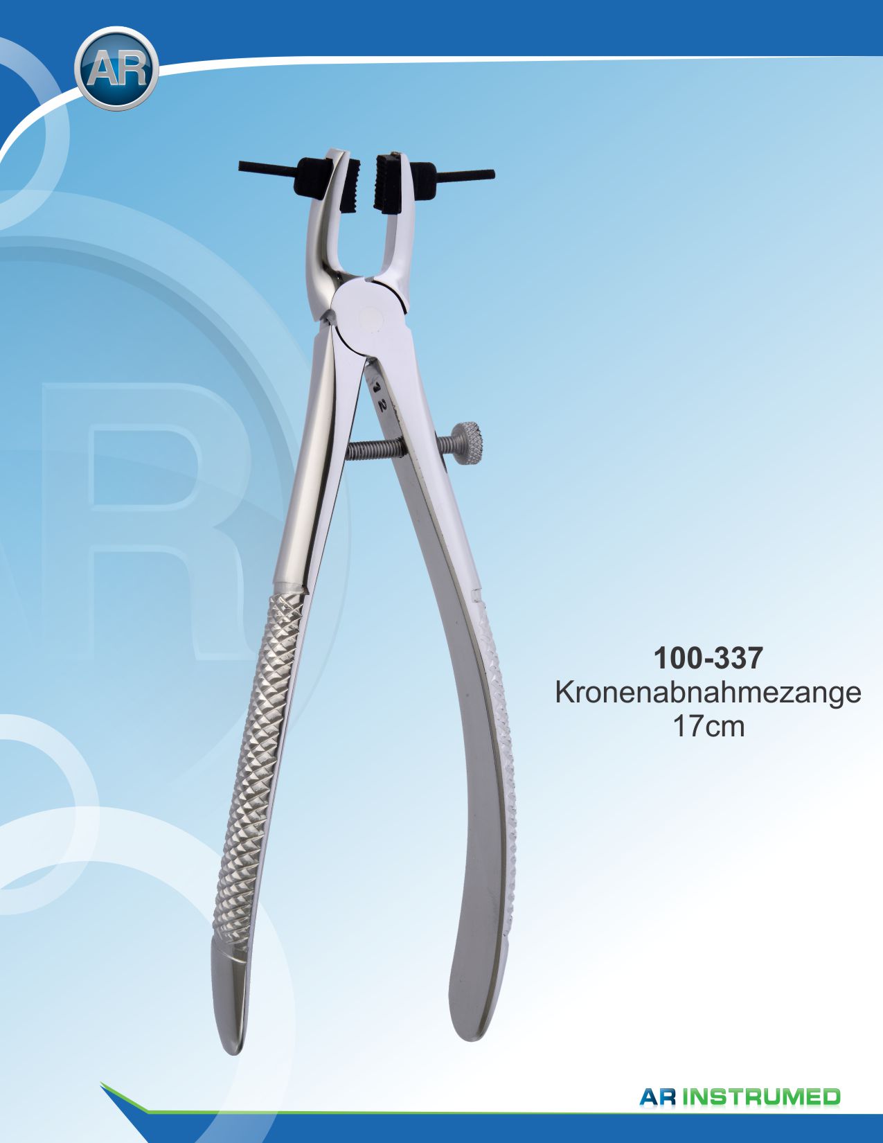 Kronenabnehmezange Standard Griff mit auswechselbaren Backen Länge ca. 17 cm Material: Hochwertiger medizinischer Edelstahl, korrosionsbeständig Autoklavierbar, sterilisierbar