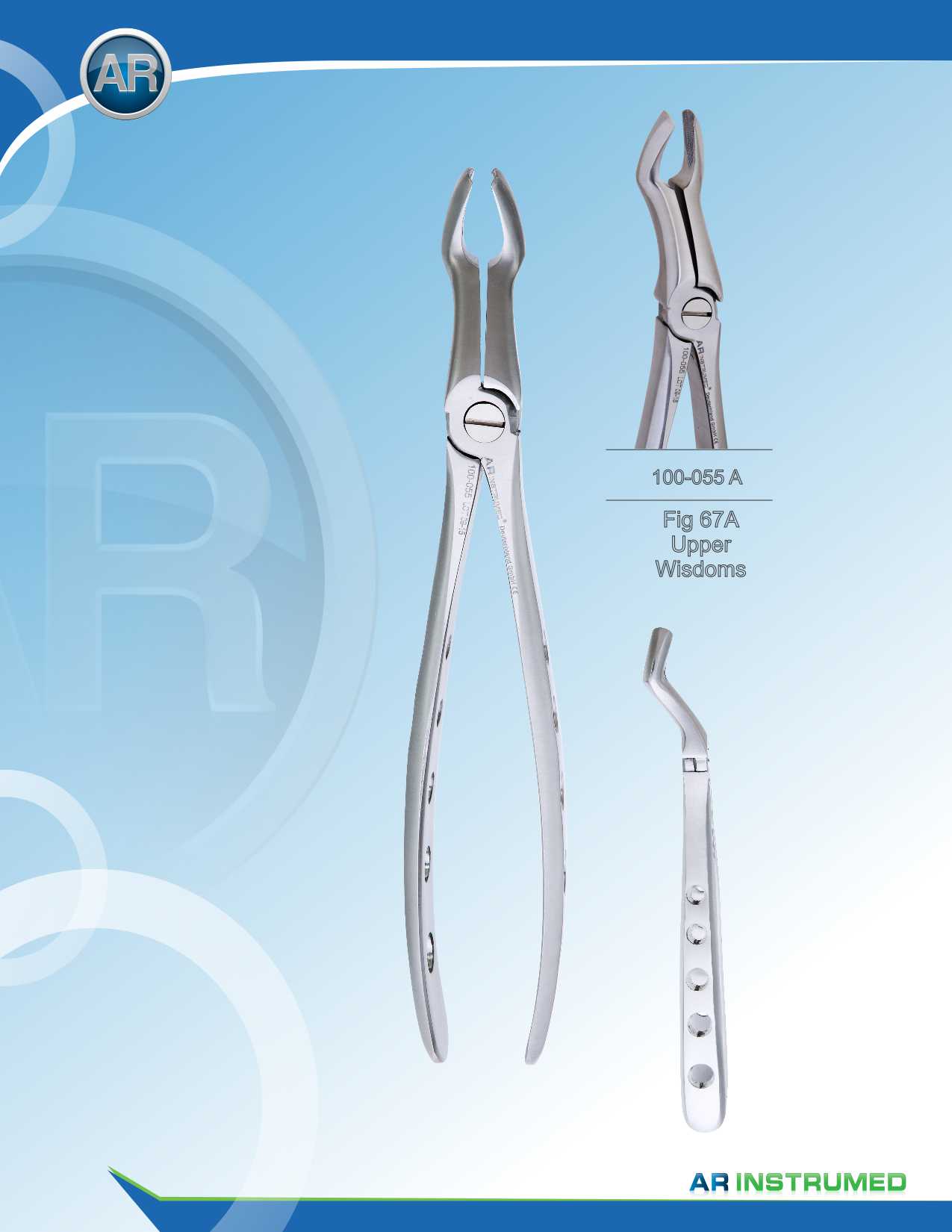 -Pince extracteur pour les dents de sagesse supérieures, figure 67A -Matériau : Acier médical inoxydable de haute qualité, résistant à la corrosion -Profil de coupe (denture transversale) -Les mâchoires sont dentelées dans le sens de la longueur et de la largeur -Bord dentelé pour une meilleure friction sur la dent -Sur la dent, les mâchoires sont dentelées dans le sens de la longueur et de la largeur