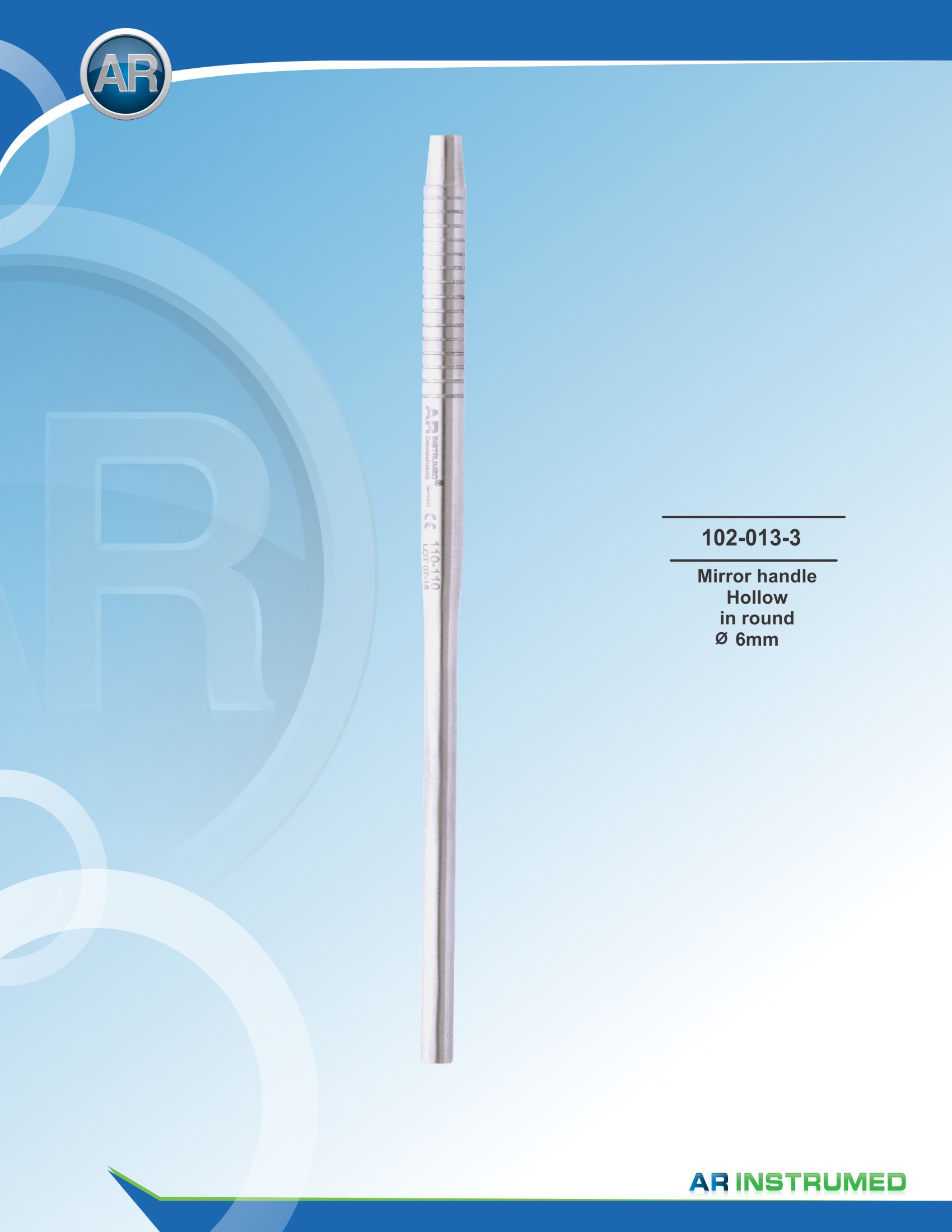 Porte-miroir à bouche solide Manche à miroir 6 mm Matériau : Acier inoxydable médical de haute qualité, résistant à la corrosion Autoclavable, stérilisable