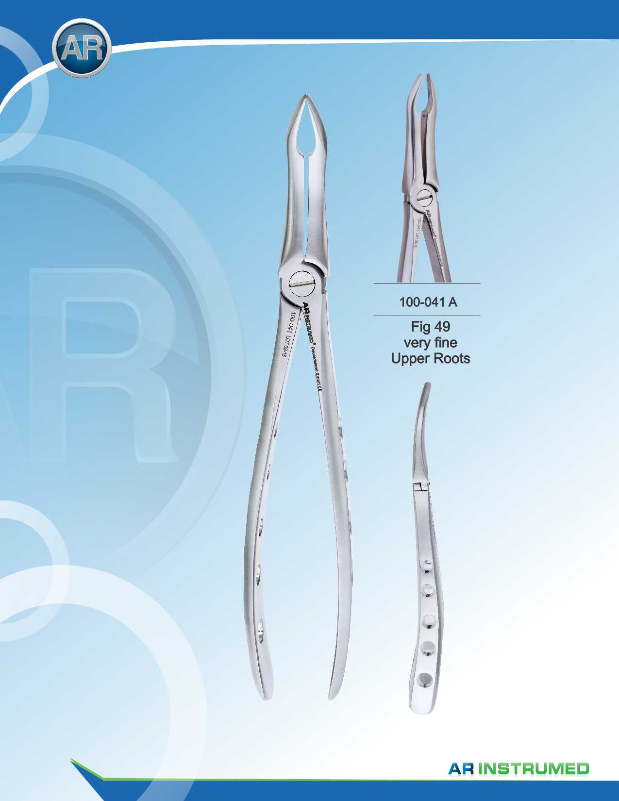 -Extractor forceps very fine upper root, figure 49 -Material: High-quality, corrosion-resistant medical stainless steel -Cutting profile (cross serration) -Force jaws with longitudinal and transverse serrations inside -Serrated edge for better friction on