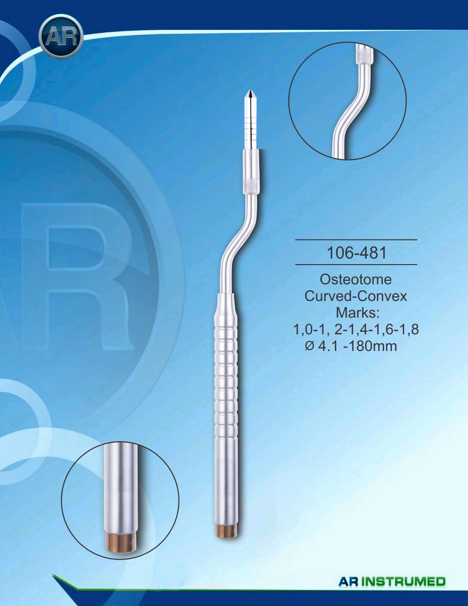 | Osteotome curved-convex marks: 1.0-1, 2-1.4-1.6-1.8 ø4.1 -180mm |